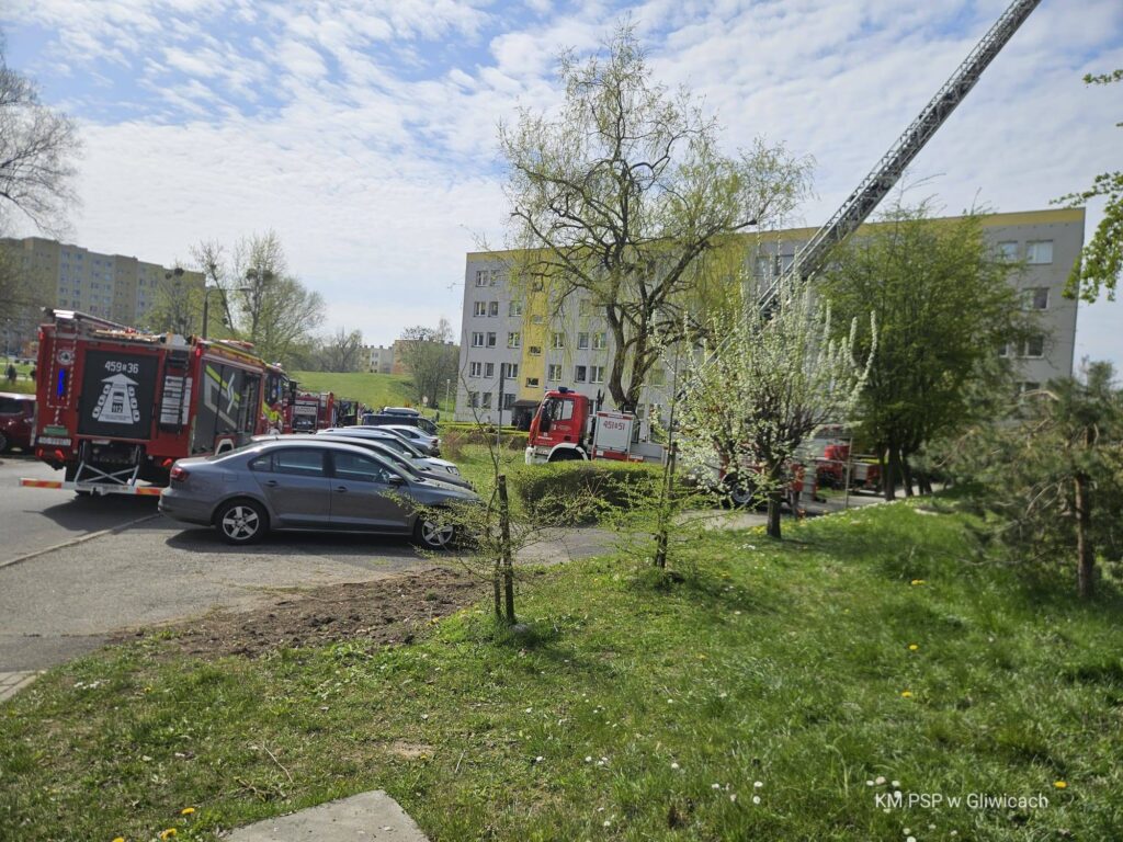 12 kwietnia 2026 roku o godzinie 11:27, Dyżurny Stanowiska Kierowania Komendanta Miejskiego Państwowej Straży Pożarnej w Gliwicach przyjął zgłoszenie o pożarze mieszkania w budynku wielorodzinnym przy ul. Syriusza w Gliwicach.