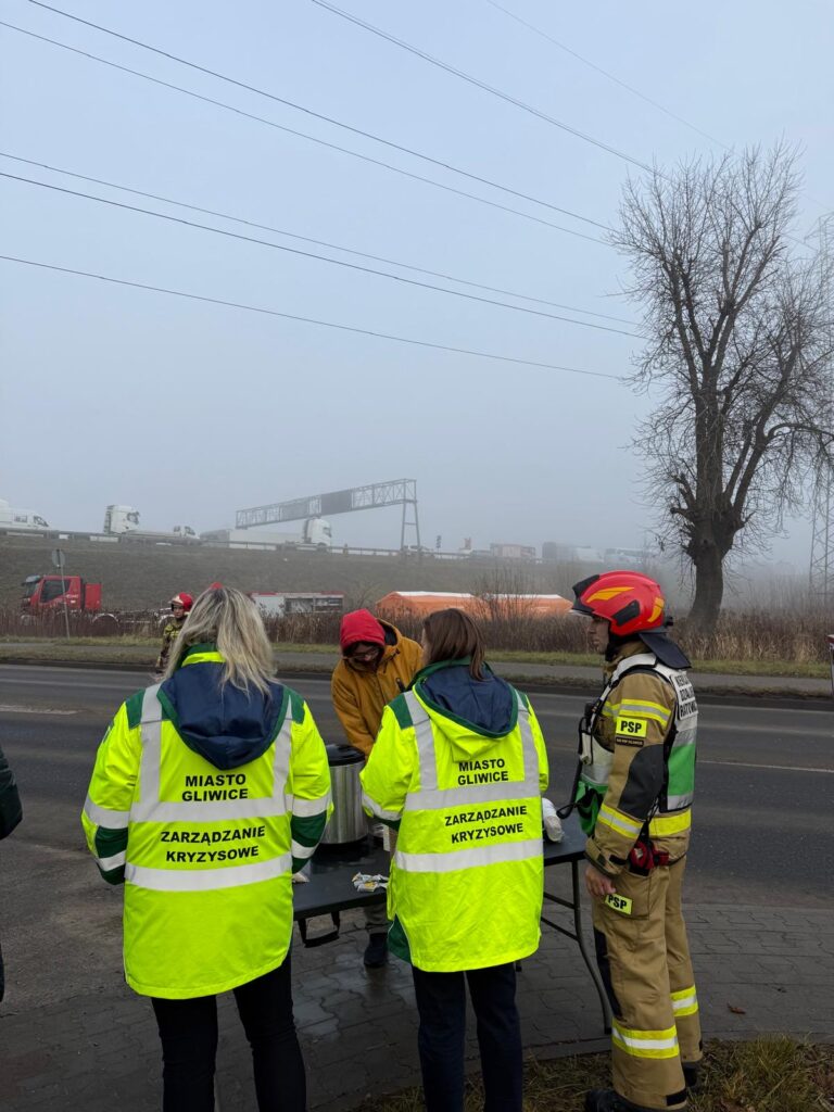 W działaniach ratowniczych uczestniczyło 7 zastępów straży pożarnej – łącznie 23 strażaków. Na miejsce zdarzenia Państwowa Straż Pożarna zadysponowała kontener kwatermistrzowski w celu rozstawienia namiotów wraz z nagrzewnicami przy ul. Bojkowskiej, zapewniając schronienie pasażerom autobusu do czasu podstawienia pojazdu zastępczego. Centrum Ratownictwa Gliwice zorganizowało ciepłe napoje dla podróżnych.