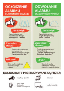 OGŁOSZENIE ALARMU – dźwięk modulowany trwający 3 minuty